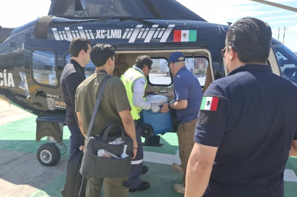 Puebla, Pue.- Como parte de las acciones para salvar vidas mediante la donación de órganos, el Gobierno del Estado de Puebla, a través de los Servicios de Salud, coordinó el traslado aéreo de riñones hacia la Ciudad de México.