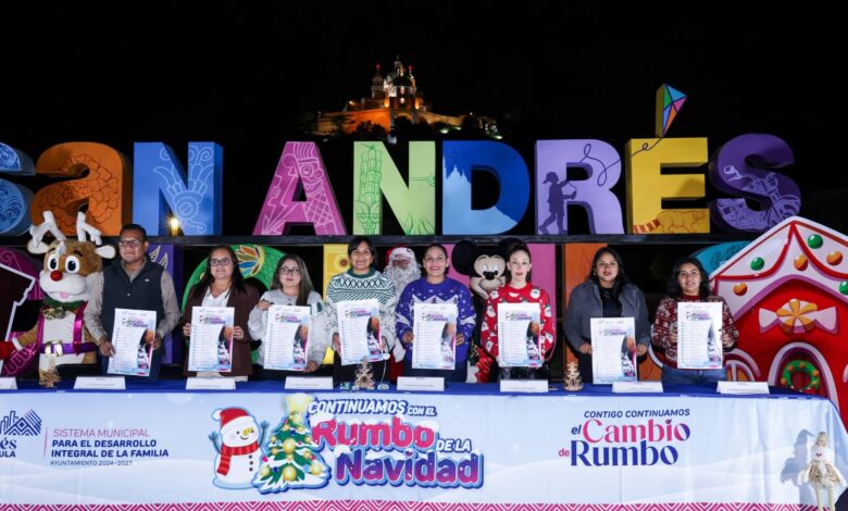 San Andrés Cholula, Puebla.— Con el objetivo de dar a conocer a la ciudadanía el calendario de encendidos de árboles navideños en juntas auxiliares, inspectorías, la Delegación Atlixcáyotl y la cabecera municipal, la presidenta municipal, Lupita Cuautle Torres, encabezó la presentación del programa “Continuamos con el rumbo de la Navidad”.