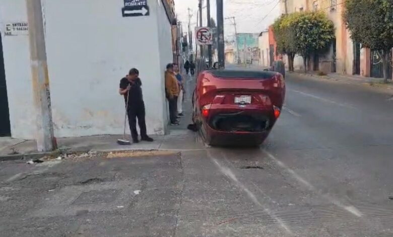 Auto resulta volcado tras accidente en la colonia Santa Maria, no hay lesionados
