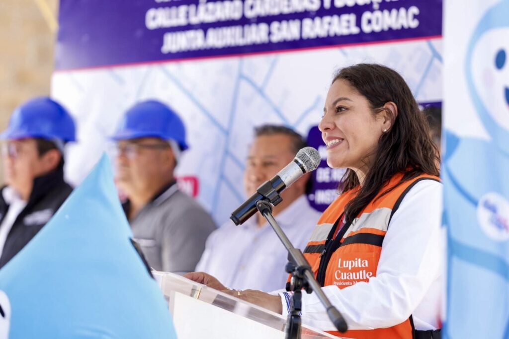 San Andrés Cholula, Pue.– Con el propósito de asegurar un suministro equitativo, continuo y seguro de recursos hídricos para las familias sanandreseñas, la presidenta municipal, Lupita Cuautle Torres dio el banderazo de inicio a la ampliación de red de agua potable en la calle Lázaro Cárdenas de la junta auxiliar de San Rafael Comac.