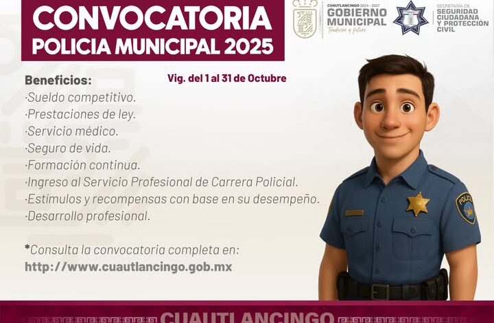 Ayuntamiento de Cuautlancingo lanza convocatoria para el reclutamiento de personal de seguridad pública