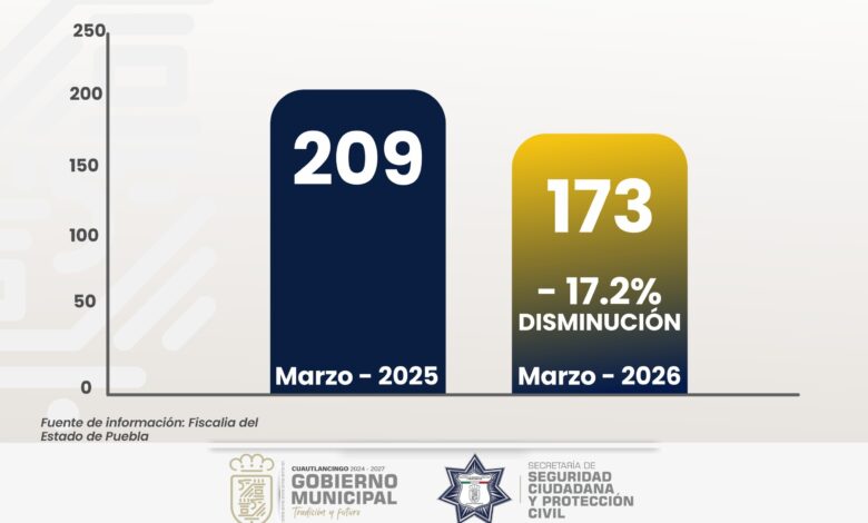 Cuautlancingo, Pue.- Por tercer mes consecutivo, y como resultado de las estrategias en materia de prevención y de coordinación interinstitucional, el municipio de Cuautlancingo registró por tercer mes consecutivo una disminución del 17.2% en la incidencia delictiva, de acuerdo con datos de la Fiscalía General del Estado de Puebla.