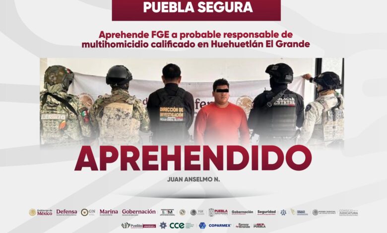 Cae presunto responsable de multihomicidio en Huehuetlán El Grande