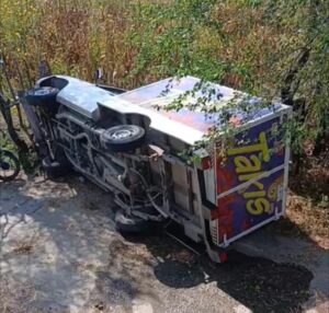 Redacción.- La volcadura de un vehículo comercial de la empresa Barcel, ocurrida en la comunidad de Colucan, Izúcar de Matamoros, resultó en el fallecimiento de un hombre y dejó al conductor gravemente herido este jueves por la tarde.