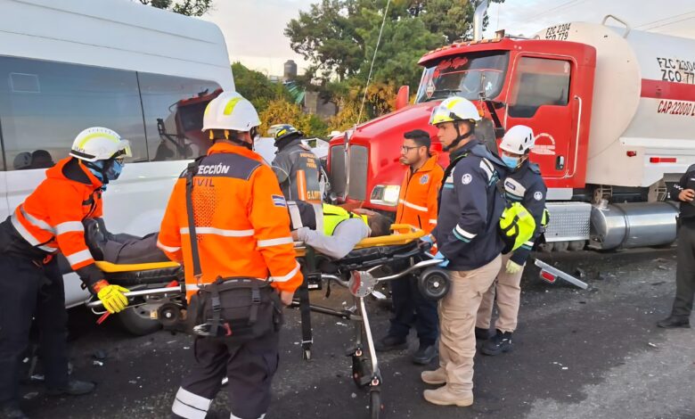 Fue la mañana de este sábado cuando se reportó el percance entre un tractocamión tipo pipa, una vagoneta y un automóvil compacto, justo antes de llegar al puente de La Resurrección.