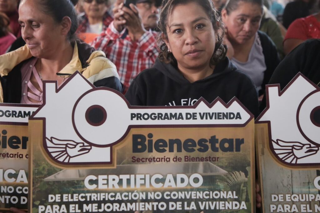 Durante su mensaje, la secretaria de Bienestar, Laura Artemisa García Chávez, detalló que para el mejoramiento de viviendas se otorgaron 140 pisos, 100 techos firmes, 50 cuartos, 180 captadores de agua, 240 estufas y cinco electrificaciones, en beneficio de los habitantes de los municipios de Ahuazotepec, Chiconcuautla, Juan Galindo, Tlaola, Zacatlán y Huauchinango, a fin de mejorar las condiciones de vida de las y los poblanos en la Sierra Norte.