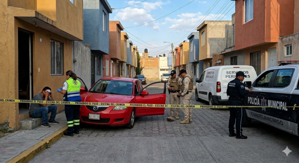 Tras retirar el dinero ambos regresaron a su vivienda a bordo de un automóvil Mazda color rojo. Según relató, al ingresar a la privada notaron que dos hombres también caminaban hacia el interior de la calle, aunque no sospecharon de sus intenciones.