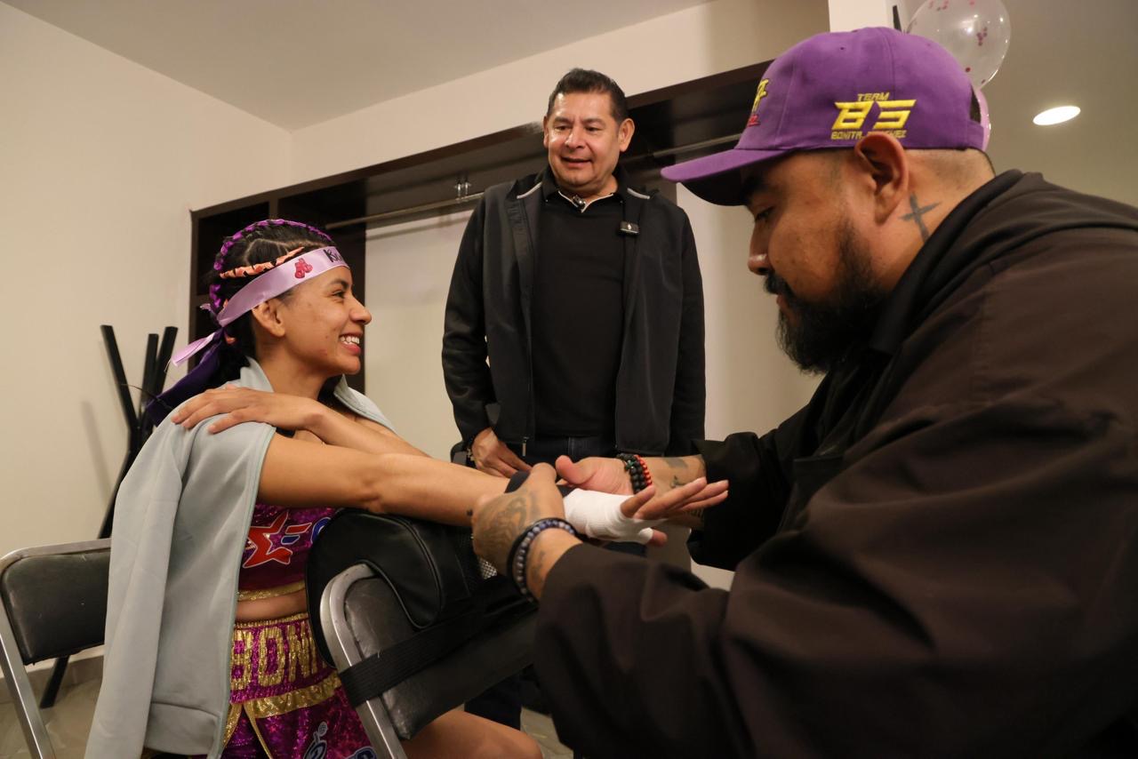 La campeona poblana contó con el apoyo del gobernador Alejandro Armenta Mier, quien previo al combate convivió con las familias poblanas que asistieron para respaldar a “La Bonita” Sánchez, en lo que se convirtió en una fiesta deportiva, donde señaló que la boxeadora es un ejemplo de superación y perseverancia.