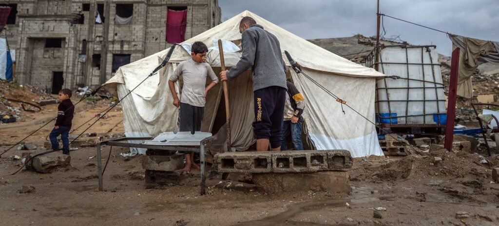 Según la Oficina de Coordinación de Asuntos Humanitarios, cerca de 55.000 familias han sido afectadas por las recientes lluvias, que dañaron o destruyeron refugios y pertenencias en distintos puntos de la Franja.