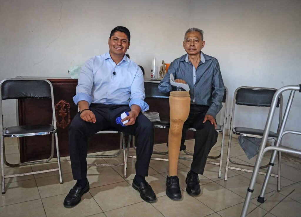 CUAUTLANCINGO, PUE. Cumpliendo la promesa hecha en campaña de donar mensualmente la mitad de su salario para causas sociales, Omar Muñoz, presidente municipal de Cuautlancingo, entregó una prótesis de pierna a un adulto mayor.