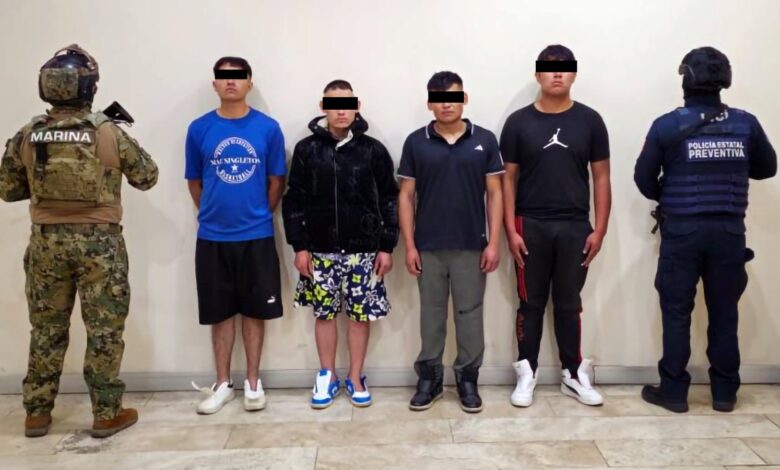 Los detenidos son: Jesús Alberto N. de 19 años; Fernando N., alias “El F”, de 21 años; Roberto Carlos N. de 23 años y Christian N., alias “El Güero”, de 31 años, provenientes del Chicoloapan Estado de México y de la Ciudad de México. Estos sujetos presuntamente operaban bajo las órdenes de Nayeli N., alias “La Blanca y/o La Güera y/o La Jefota”, también detenida por las fuerzas de seguridad.