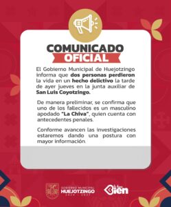 Redacción.- Tras el ataque armado que se registró la noche del jueves en la comunidad de San Luis Coyotzingo y que dejó saldo de dos muertos, se identificó a una de las víctimas con el apodo de ‘La Chiva’.