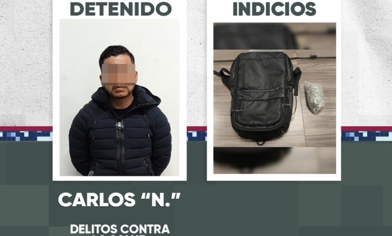 Por ello, fue detenido Carlos “N”, de 37 años de edad, quien cuenta con registros por delitos contra la salud y robo de vehículo; por lo que fue puesto a disposición del agente del Ministerio Público, para lo conducente.