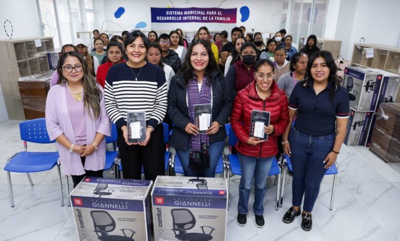 Entrega Lupita Cuautle equipamento a los 12 CAIC de San Andrés Cholula