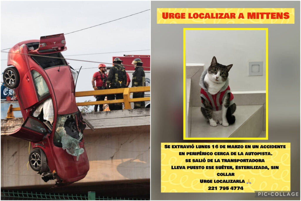 San Pedro Cholula, Pue.- Tras el fuerte percance vial registrado la tarde de ayer en el Periférico Ecológico a la altura de la Avenida del Ferrocarril, una familia lucha por encontrar a su gatita desaparecida; el otro animal de compañía que viajaba en el vehículo falleció en el lugar.