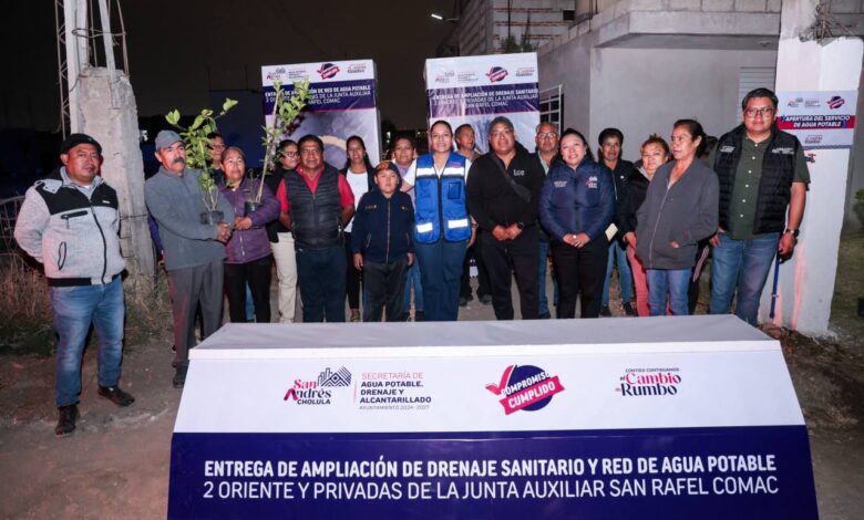 Con el objetivo de fortalecer la infraestructura hidráulica y sanitaria, el Ayuntamiento de San Andrés Cholula encabezado por la presidenta municipal Lupita Cuautle, realizó la entrega de la ampliación de drenaje sanitario y red de agua potable en San Rafael Comac.