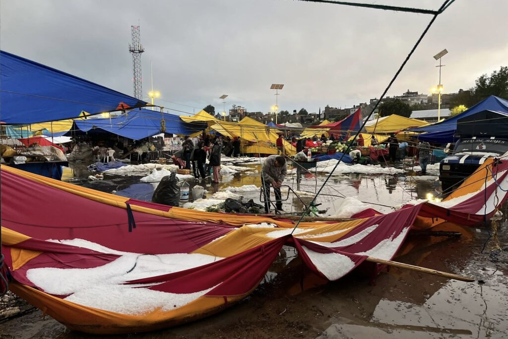 Tlaxcala, Tlax.- Lo que inició como una tarde calurosa de Sábado de Gloria se transformó rápidamente en un escenario de caos. Una sorpresiva e intensa granizada, derivada de los efectos del Frente Frío número 43, azotó la capital del estado y municipios aledaños la tarde de este 4 de abril, dejando a su paso inundaciones, colapsos de estructuras y el cierre de centros comerciales.