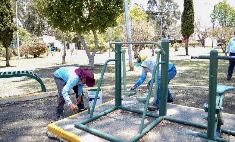 En la colonia Arboledas de Guadalupe, se realizaron labores de pintura en 11 ejercitadores, ocho bancas y cinco juegos infantiles, además de la reparación de un ejercitador y dos columpios, acciones que permiten garantizar instalaciones seguras y en buen estado para el uso de la ciudadanía.