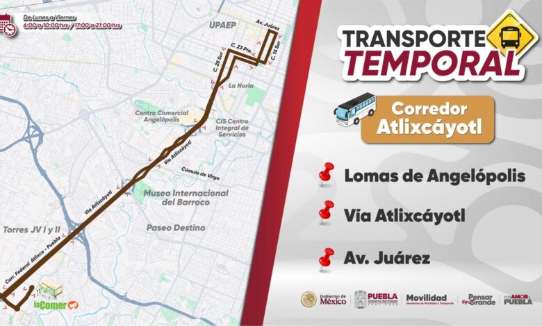 CIUDAD DE PUEBLA, Pue.- Como parte de la estrategia que implementa el gobernador Alejandro Armenta Mier para ordenar, modernizar y fortalecer el transporte público en el estado, la Secretaría de Movilidad y Transporte (SMT) informa que el lunes 2 de marzo de 2026 iniciará operaciones un nuevo corredor temporal en la capital poblana.
