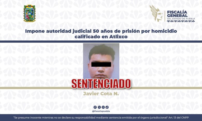Como resultado del desahogo del juicio oral, la Fiscalía General del Estado de Puebla (FGE) obtuvo sentencia condenatoria en contra de Javier Cota N., de 27 años, por su responsabilidad en el delito de homicidio calificado en el municipio de Atlixco.