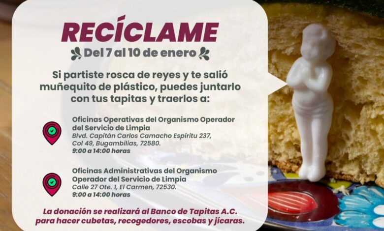 Estas figuras pueden ser recicladas, al igual que las taparroscas de las botellas de plástico, las cuales pueden llevarse a las direcciones del Organismo, ubicadas en Blvd. Valsequillo 237, San Baltazar Campeche (junto a Bomberos Valsequillo) y Calle 27 Ote. 1, El Carmen, 72530, donde serán concentrados para su donación al Banco de Tapitas A.C.