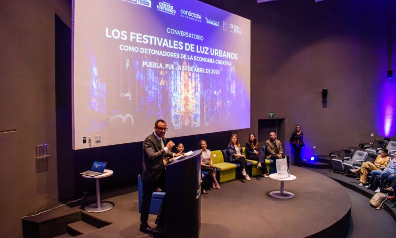 Puebla, Pue.- El arte lumínico es una vocación de desarrollo personal, comunitario y económico, que puede favorecer a localidades y ciudades enteras, como ha demostrado el Festival Glow México, coincidieron sus curadores Janine Safawi y, durante el conversatorio que tuvieron frente a jóvenes, académicos e interesados, en la sesión de Conéctate, “Los Festivales de Luz Urbanos como Detonadores de la Economía Creativa”.