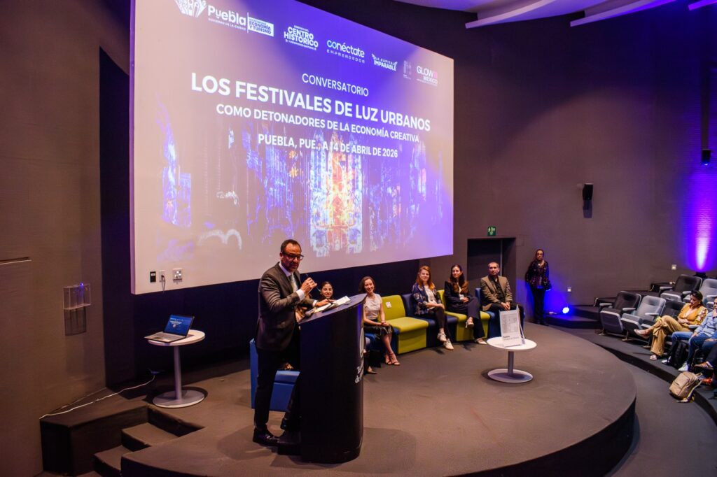 Puebla, Pue.- El arte lumínico es una vocación de desarrollo personal, comunitario y económico, que puede favorecer a localidades y ciudades enteras, como ha demostrado el Festival Glow México, coincidieron sus curadores Janine Safawi y, durante el conversatorio que tuvieron frente a jóvenes, académicos e interesados, en la sesión de Conéctate, “Los Festivales de Luz Urbanos como Detonadores de la Economía Creativa”.