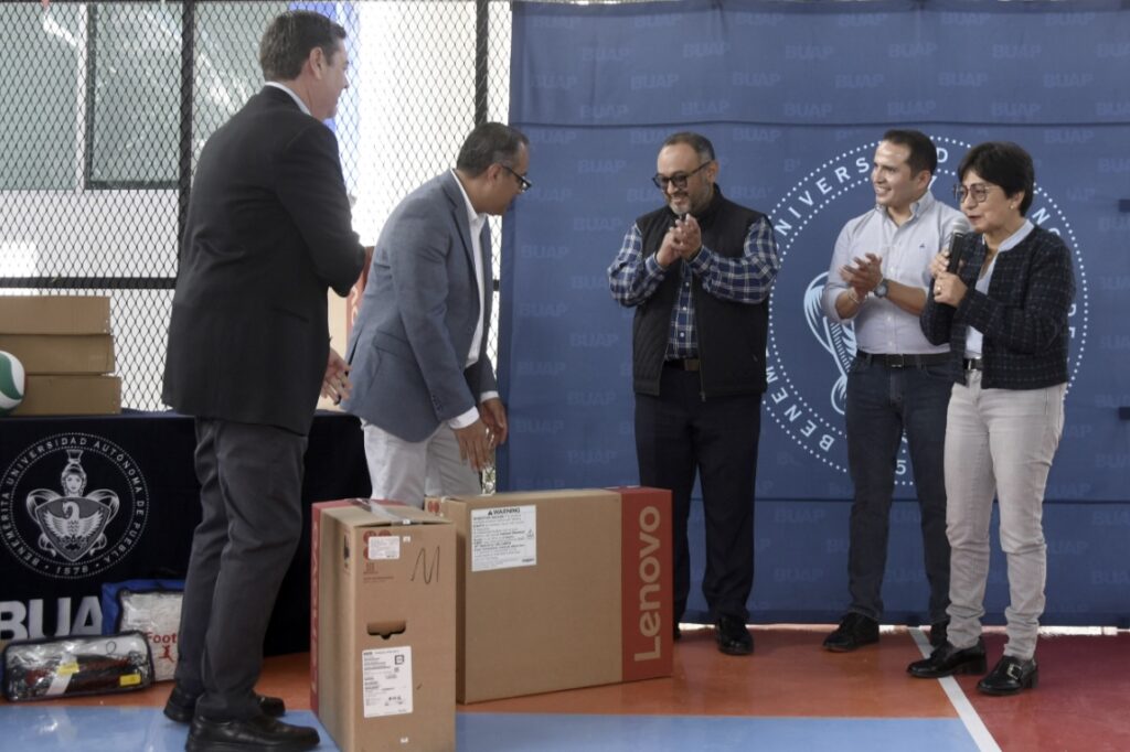 Asimismo, hizo entrega simbólica de un total de 120 equipos de cómputo, 25 guitarras y 24 balones de básquetbol que servirán para equipar a las facultades de Medicina, Enfermería y Estomatología, además de facilitar las actividades deportivas, recreativas y culturales como las que realiza la Rondalla de la Salud.