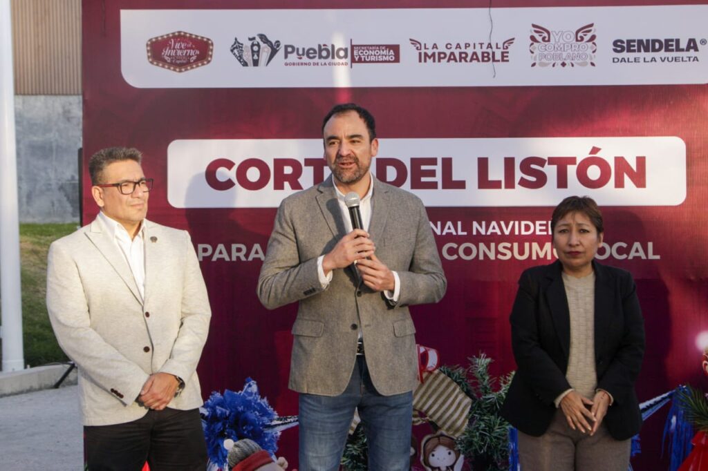 El secretario de Economía y Turismo, Jaime Oropeza Casas; la directora de Parque Sendela, Caridad Jara Contreras, y el vicepresidente de Emprendimiento de la Cámara Nacional de Comercio (CANACO) Puebla, Juan Carlos Castilla Parra; inauguraron este bazar con 35 personas emprendedoras, productoras y artesanas, todas del municipio de Puebla, que ofrecen artículos innovadores a precios justos este fin de semana.