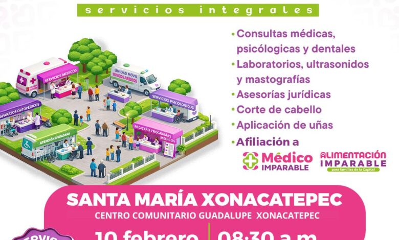 En esta ocasión se otorgarán, de manera gratuita, consultas médicas y nutricionales, asesorías jurídicas, atención psicológica, afiliación al programa Médico Imparable, estudios de mastografía, registro al programa de Alimentación Imparable, así como la recepción de solicitudes de aparatos ortopédicos, corte de cabello y aplicación de uñas, entre otros servicios.