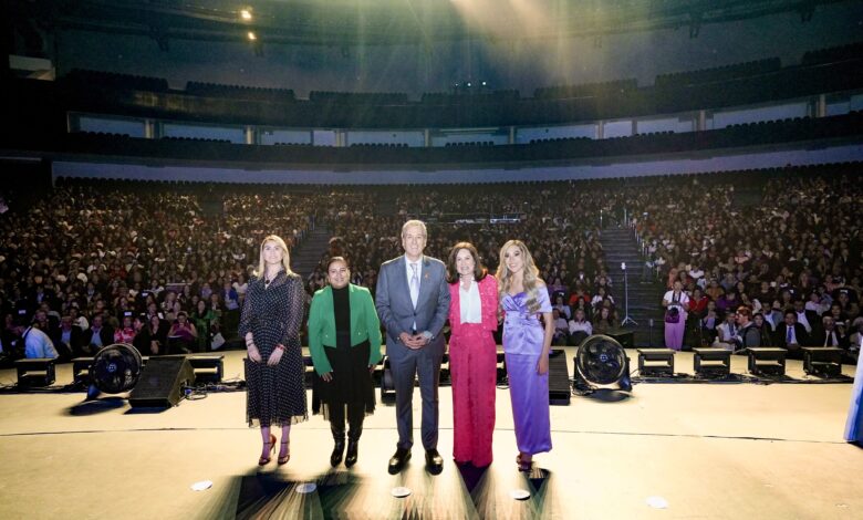 “Las mujeres también están en el centro de las acciones”, expresó el alcalde durante su mensaje ante las miles de asistentes.