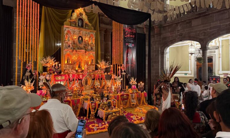 Puebla, Pue., 04 noviembre de 2025. — La ofrenda instalada en el Palacio Municipal destacó como uno de los espacios más visitados del Corredor de Ofrendas 2025, al atraer a miles de personas que disfrutaron de su diseño, simbolismo y homenaje a las tradiciones durante el festival “La Muerte es un Sueño” que organizó el Gobierno de la Ciudad que preside Pepe Chedraui, a través del Instituto Municipal de Arte y Cultura de Puebla (IMACP).