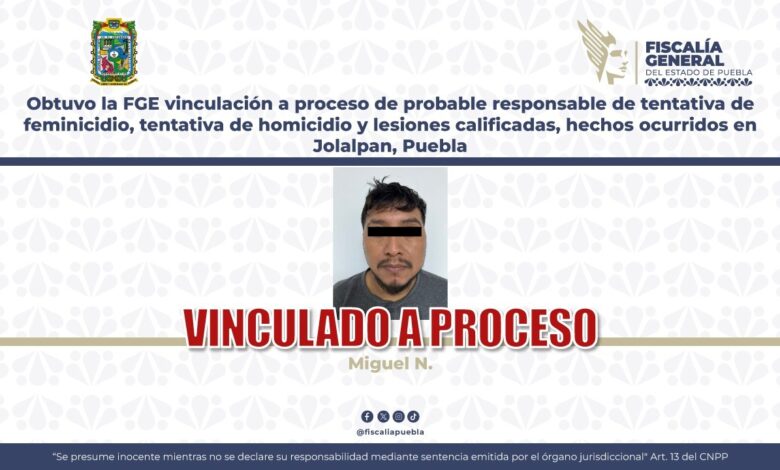 Obtuvo la FGE vinculación a proceso de probable responsable de tentativa de feminicidio, tentativa de homicidio y lesiones calificadas, hechos ocurridos en Jolalpan, Puebla