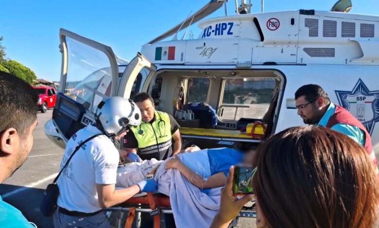 Debido a la complejidad de su cuadro clínico, la paciente fue referida vía aérea por el Sistema de Urgencias Médicas Avanzadas (SUMA), procedente del Hospital General de Huauchinango al Hospital General del Sur de la capital poblana y, posteriormente, trasladada al Hospital de la Mujer, conforme a los protocolos establecidos para la atención de casos de alta complejidad obstétrica.