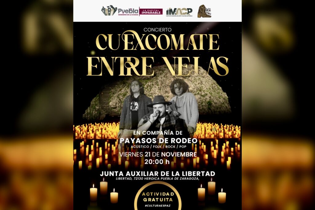 Puebla,Pue.- El Gobierno de la Ciudad, encabezado por el presidente municipal Pepe Chedraui, a través del Instituto Municipal de Arte y Cultura de Puebla (IMACP), dirigido por Anel Nochebuena, invita a la ciudadanía a disfrutar de una noche llena de luz, música y convivencia durante la primera edición de “Cuexcomate entre Velas”.