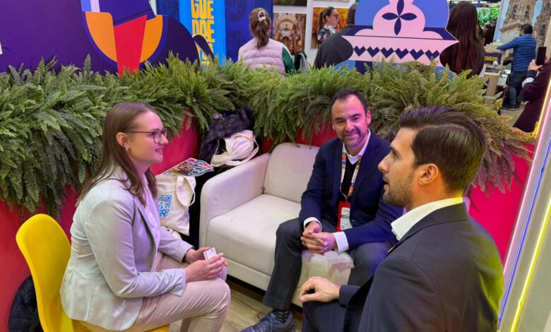 MADRID, ESPAÑA.- Durante la segunda jornada de trabajo en la Feria Internacional de Turismo (FITUR), Jaime Oropeza Casas, secretario de Economía y Turismo, destacó la Procesión de Viernes Santo, la gastronomía y el patrimonio edificado de la ciudad de Puebla, entre agentes de viajes, cofradías y medios de comunicación internacionales.