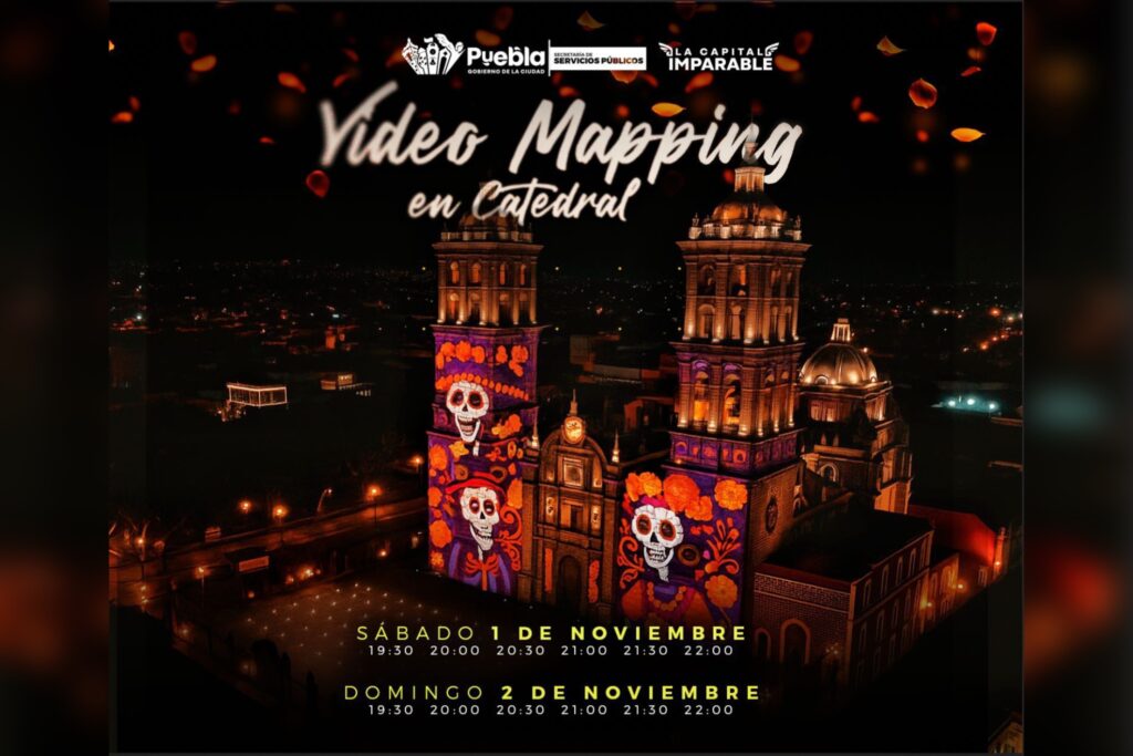 Puebla, Pue.- Este 01 y 02 de noviembre, la fachada de la Catedral Puebla se iluminará con un videomapping conmemorativo a la temporada de Día de Muertos, impulsado por el Gobierno de la Ciudad, encabezado por el presidente municipal Pepe Chedraui Budib, a fin de promover la convivencia familiar a través de una experiencia visual que celebra nuestras raíces y tradiciones.
