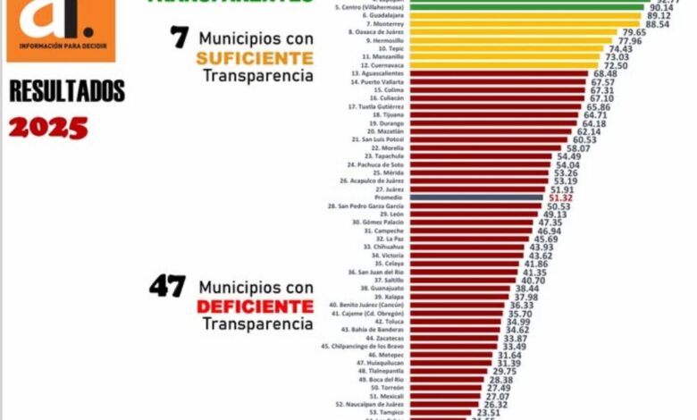 De acuerdo con los resultados del Índice de Transparencia y Disponibilidad de la Información Fiscal de los Municipios, 2025