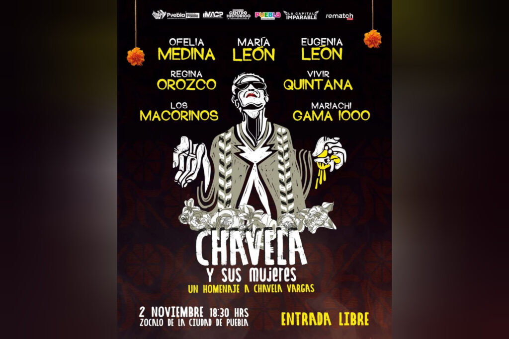 Puebla, Pue.- El Gobierno de la Ciudad que preside Pepe Chedraui, a través del Instituto Municipal de Arte y Cultura de Puebla (IMACP) que dirige Anel Nochebuena, invita a todas y todos los poblanos a disfrutar del concierto “Chavela y sus mujeres, un homenaje a Chavela Vargas”, este domingo 2 de noviembre a las 18:30 horas en el Zócalo de la ciudad. La entrada será libre.
