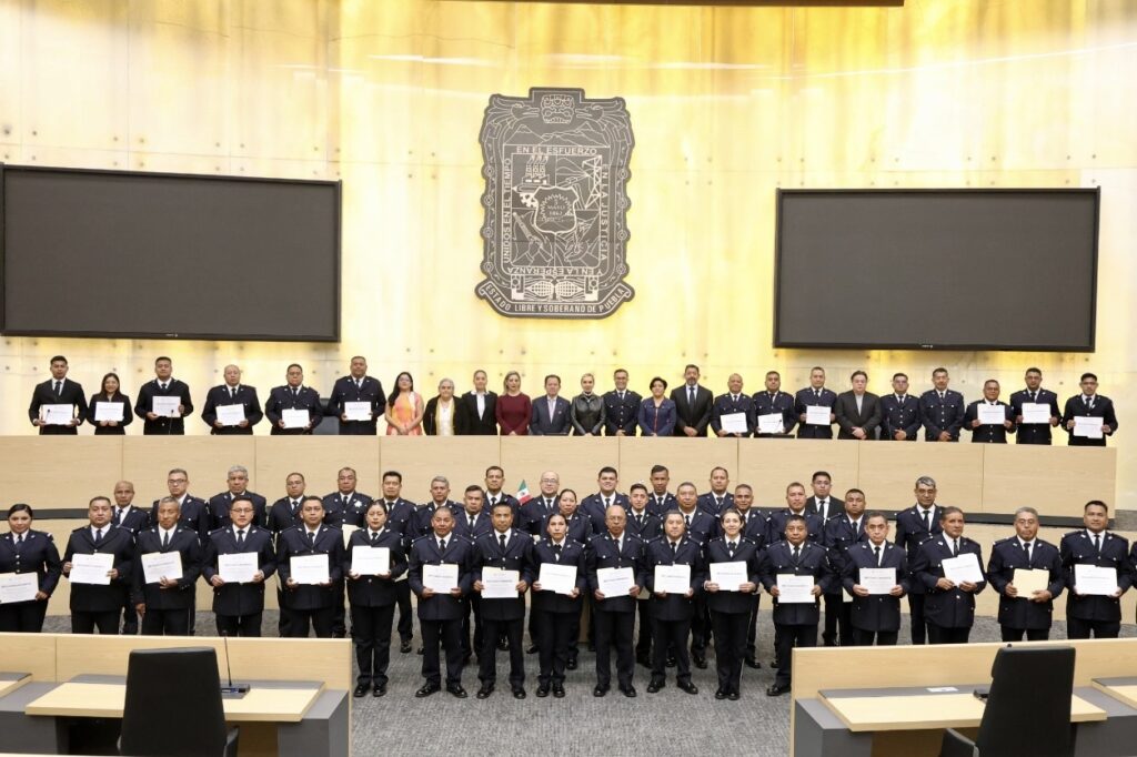 Puebla, Pue.- El Congreso del Estado, a través del Voluntariado, entregó reconocimientos a integrantes de la Banda Sinfónica de la Secretaría de Seguridad Pública por los 36 años de trayectoria de la agrupación, con la finalidad de destacar su contribución a la promoción de la cultura y el fortalecimiento del tejido social.