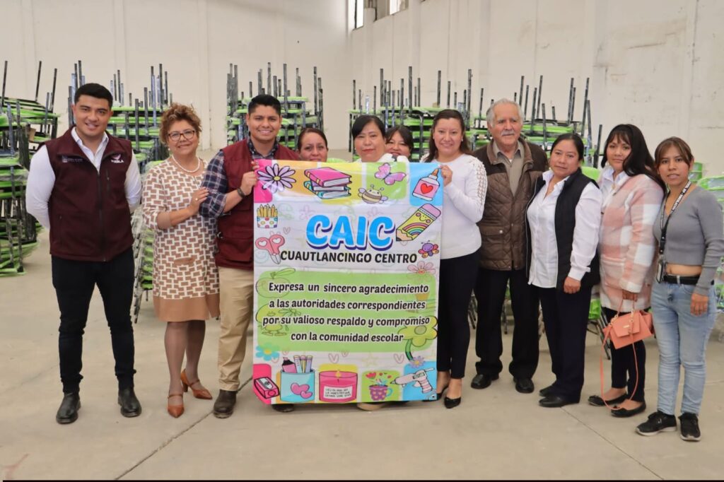 Subrayó que, gracias a este trabajo conjunto, se realizó la entrega de mil 235 sillas, 618 mesas, 39 libreros y 39 pizarrones en beneficio de 975 alumnas y alumnos de 12 Centros de Atención Infantil Comunitarios, hecho que fortalece los espacios de atención y aprendizaje.