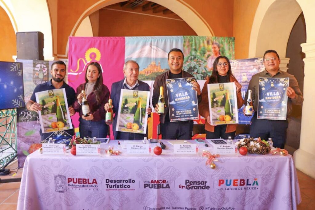 Puebla, Pue.- El Presidente Municipal de Huejotzingo, Roberto Solís Valles, acompañado del Subsecretario de Desarrollo Turístico del Estado, Carlos Márquez Pérez, y de la Secretaria de Turismo y Cultura del Municipio, Andrea Morales García, presentó la segunda edición de la Villa Navideña 2025.