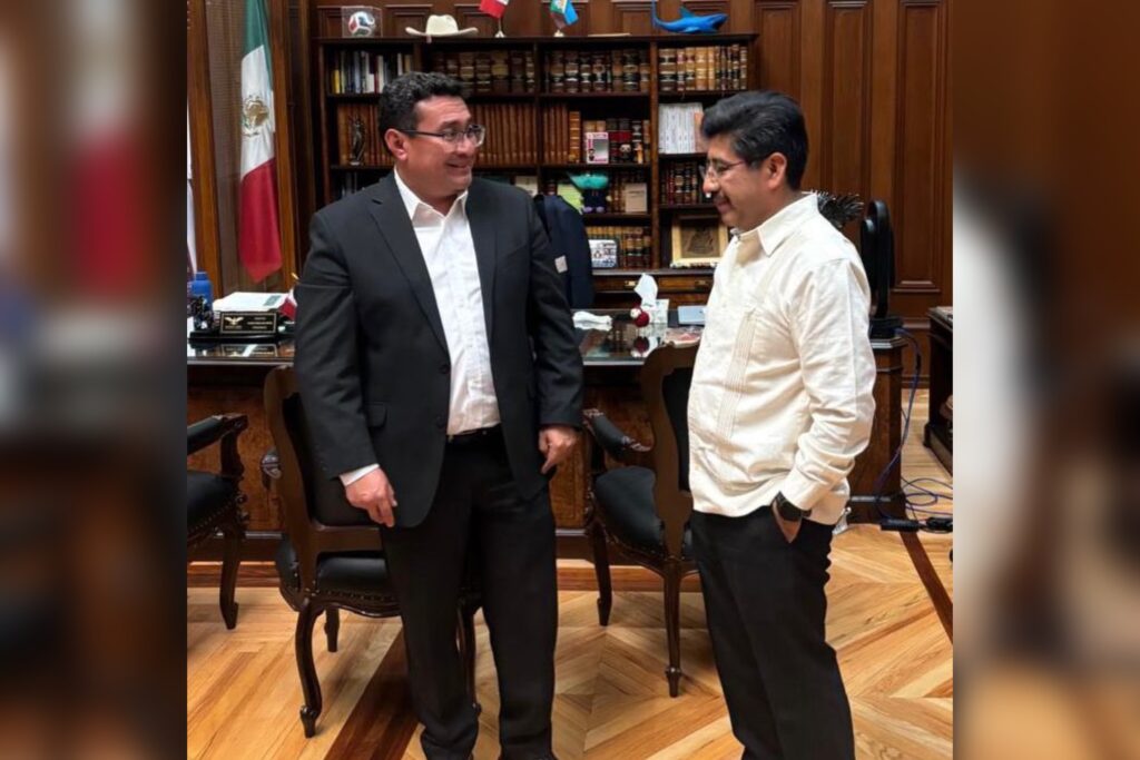 Puebla, Pue.- El presidente de la Junta de Gobierno y Coordinación Política (JUGOCOPO) del Congreso del Estado de Puebla, Pavel Gaspar Ramírez, se reunió con el presidente de la Suprema Corte de Justicia de la Nación (SCJN), ministro Hugo Aguilar Ortiz, para dialogar sobre la construcción de la agenda indígena legislativa en Puebla.