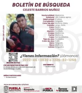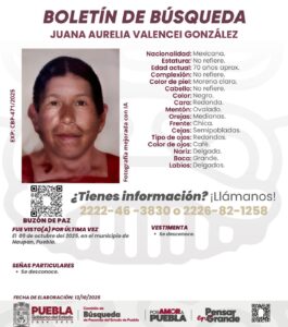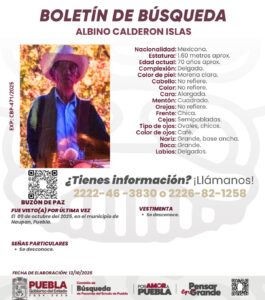 – Pedro Segura Muñoz, de 75 años, visto por última vez el 7 de octubre en Tetela de Ocampo.
