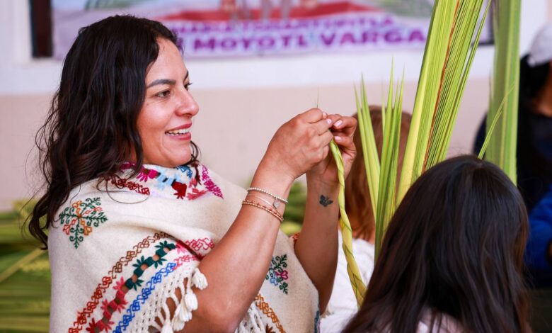 San Andrés Cholula, Puebla. – Como parte de las expresiones culturales que dan identidad al municipio, la presidenta municipal Lupita Cuautle acompaño a habitantes de la junta auxiliar de Santa María Tonantzintla en una de las tradiciones más emblemáticas de la Semana Santa, con las prácticas comunitarias, simbolismo religioso y conocimiento ancestral que se preservan mediante el tejido de palma.