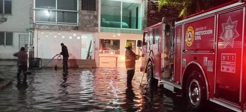 Asimismo, en el fraccionamiento San Angelín ubicado en la privada Morelos de la cabecera municipal, se atendió una emergencia por inundación utilizando una unidad de motobomba para desahogar el agua que subió 30 cm debido a acumulación de basura. También se realizaron tareas de limpieza y se destaparon coladeras.