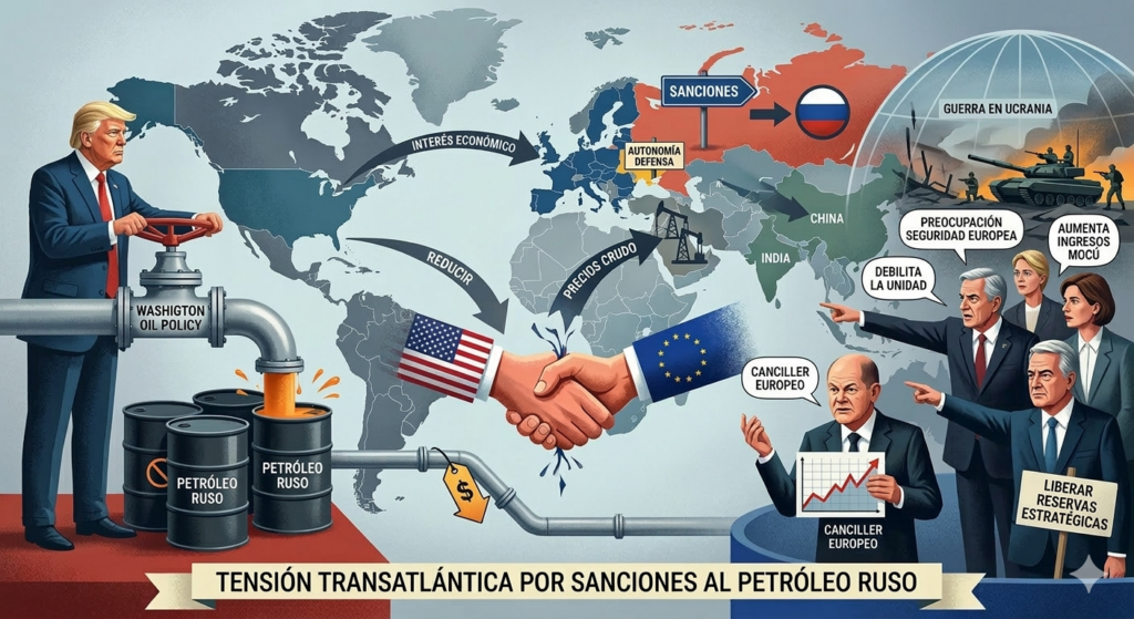 La tensión entre la Unión Europea y Estados Unidos aumentó tras una serie de decisiones en política exterior impulsadas por el presidente Donald Trump. El detonante más reciente fue la suspensión temporal de sanciones contra el petróleo ruso, una medida que generó críticas en Bruselas y en varias capitales europeas por su posible impacto en la guerra en Ucrania.
