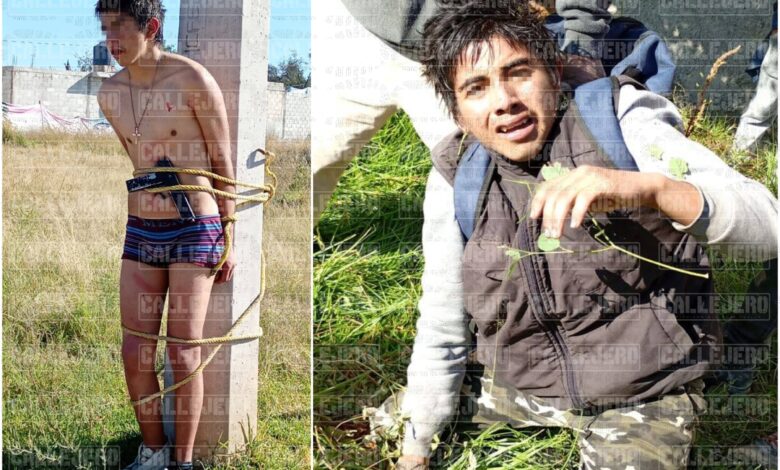 Vecinos de Amozoc encueran y amarran a un poste a una “rata”, en La Venta
