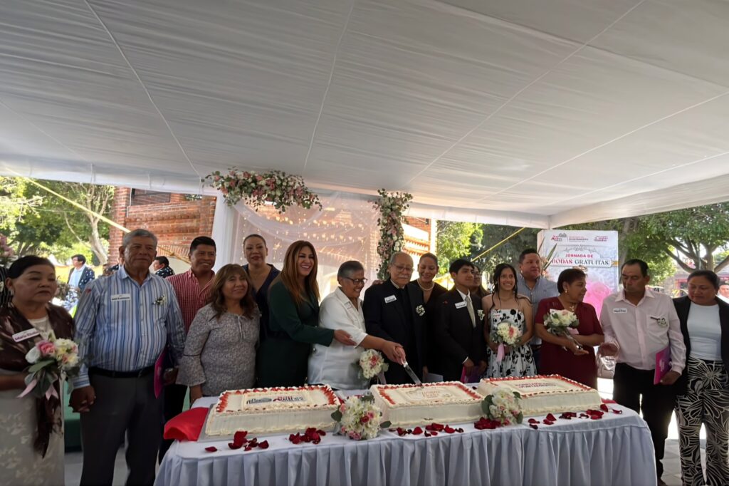 Al concluir la ceremonia, las y los contrayentes recibieron sus actas de matrimonio, sellaron su unión con el tradicional beso y participaron en un brindis y partida de pastel en compañía de sus familiares y autoridades municipales.